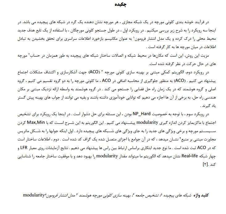 عنوان سمینار:  استفاده از بهینه سازی کلونی برای تشخیص اجتماع  در شبکه های پیچیده