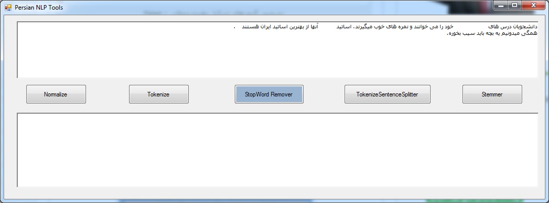 در این کد که به زبان سی شارپ نوشته شده است چگونگی استفاده از کتابخانه های  ابزارهای پردازش متن فارسی زیر آورده شده است: