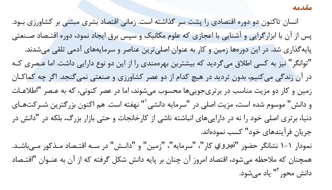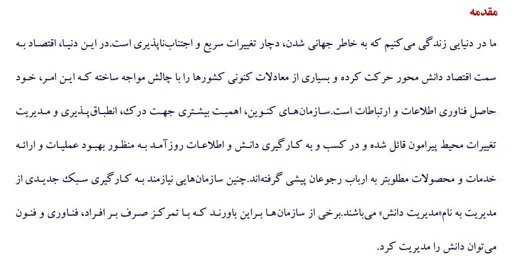 مقاله هشتم: مديريت دانش، مولفه کليدي در نظام ملي نوآوري و کسب توانايي رقابت در اقتصاد دانش بنيان – فایل Word شامل 12صفحه