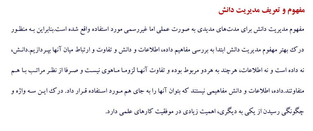 مقاله اول: مديريت دانش؛ تعاريف و مفاهيم – فایل Word شامل 8 صفحه